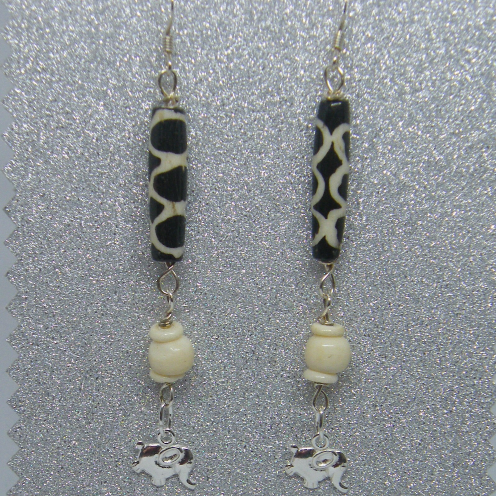 We have combined vintage animal print tube beads with Sterling Silver elephant charms, perfect compliment to your ethnic look or add a little boho chic to a simple outfit.